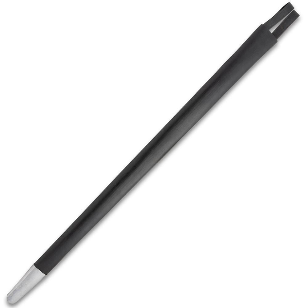Protect your training sword with this Black Sword Scabbard, crafted for durability and style. Measuring 37 1/2" overall, it fits most training sword blades from 29 1/4" to 32", excluding model BK6505. The exterior is wrapped in 100% pure leather for a sleek and professional look, while the interior features a soft felt wool lining to protect the blade from scratches. The scabbard is finished with a polished metal tip, adding both structure and classic styling. Whether you’re transporting your sword or displaying it, this scabbard offers a reliable and attractive solution. Ideal for martial artists, reenactors, or collectors who value thoughtful craftsmanship and a secure fit.