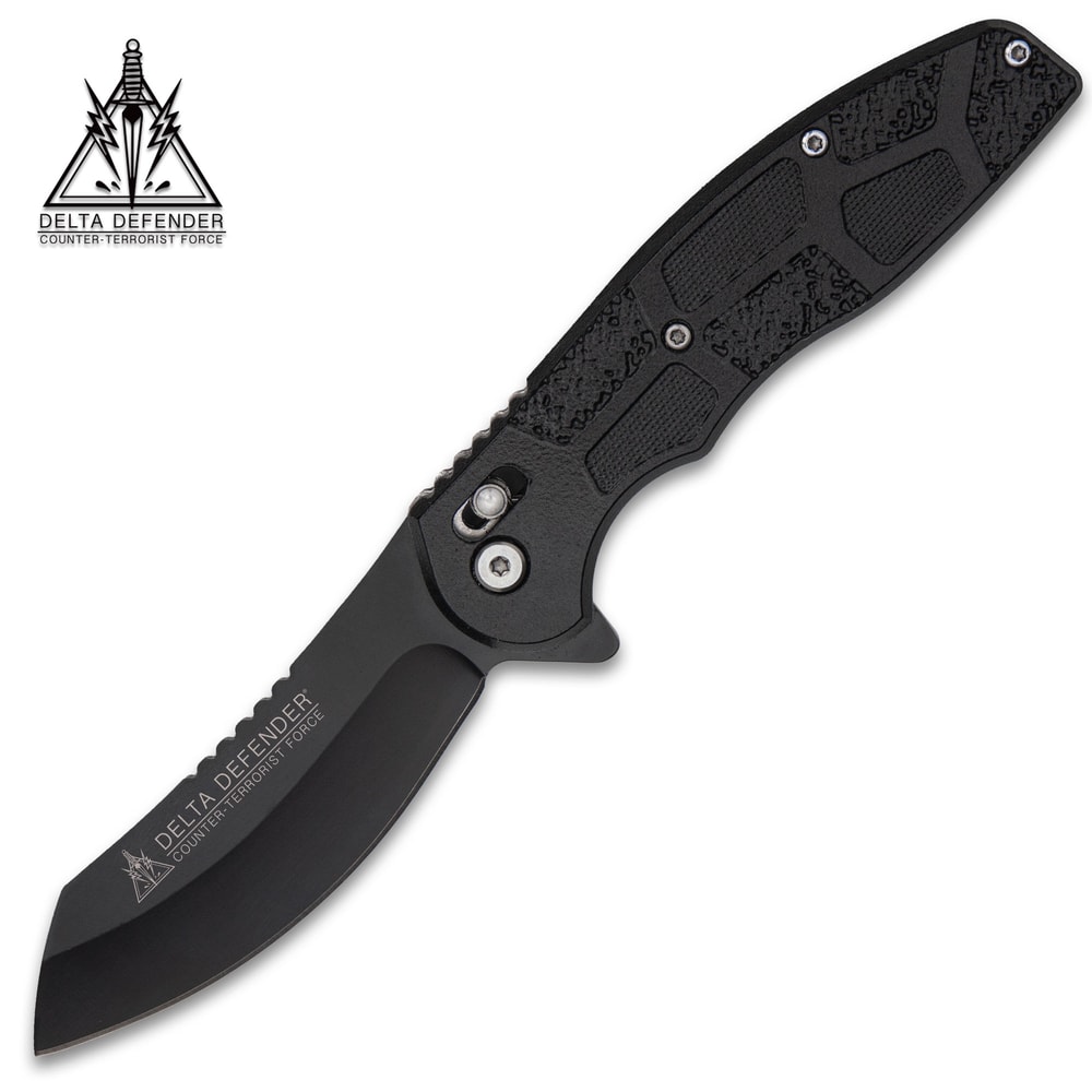 The Delta Defender Pocket Knife delivers dependable performance with a sleek, understated profile. Its 3 1/2" black dao-style blade has a broad belly for controlled push cuts, a forward tip for piercing tasks, and a gentle curve for smooth draw cuts. The axis locking mechanism engages with precision, ensuring the blade stays firmly in place through every use. The black handle’s streamlined design includes subtle texturing for grip security, while the discreet pocket clip keeps the knife ready without drawing attention. Measuring 8 1/4" overall, it strikes a balance between carry convenience and capable performance for everything from opening heavy packaging to light outdoor tasks.