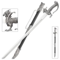 Dreadfire Dragon Decorative Sword And Metal Accented Sheath - Stainless Steel Blade, Satin Finish, Intricate Dragon Shaped Handle - 35 1/4” Length