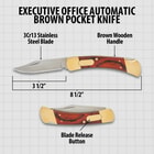 - SHARP AND STYLISH: The Executive Office Automatic Brown Pocket Knife looks as sharp in style as its blade is sharp to the touch