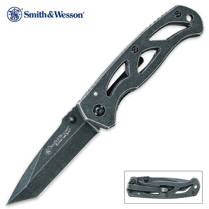 Smith & Wesson Stonewash Tanto Point Skeletonized Folding Pocket Knife