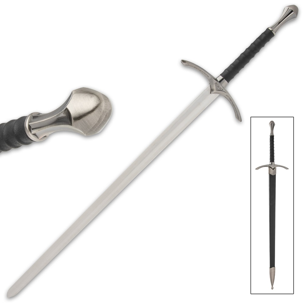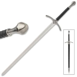 Wizard’s One-Handed Sword And Scabbard - Stainless Steel Blade, Genuine Black Leather Grip - Length 37 3/4”